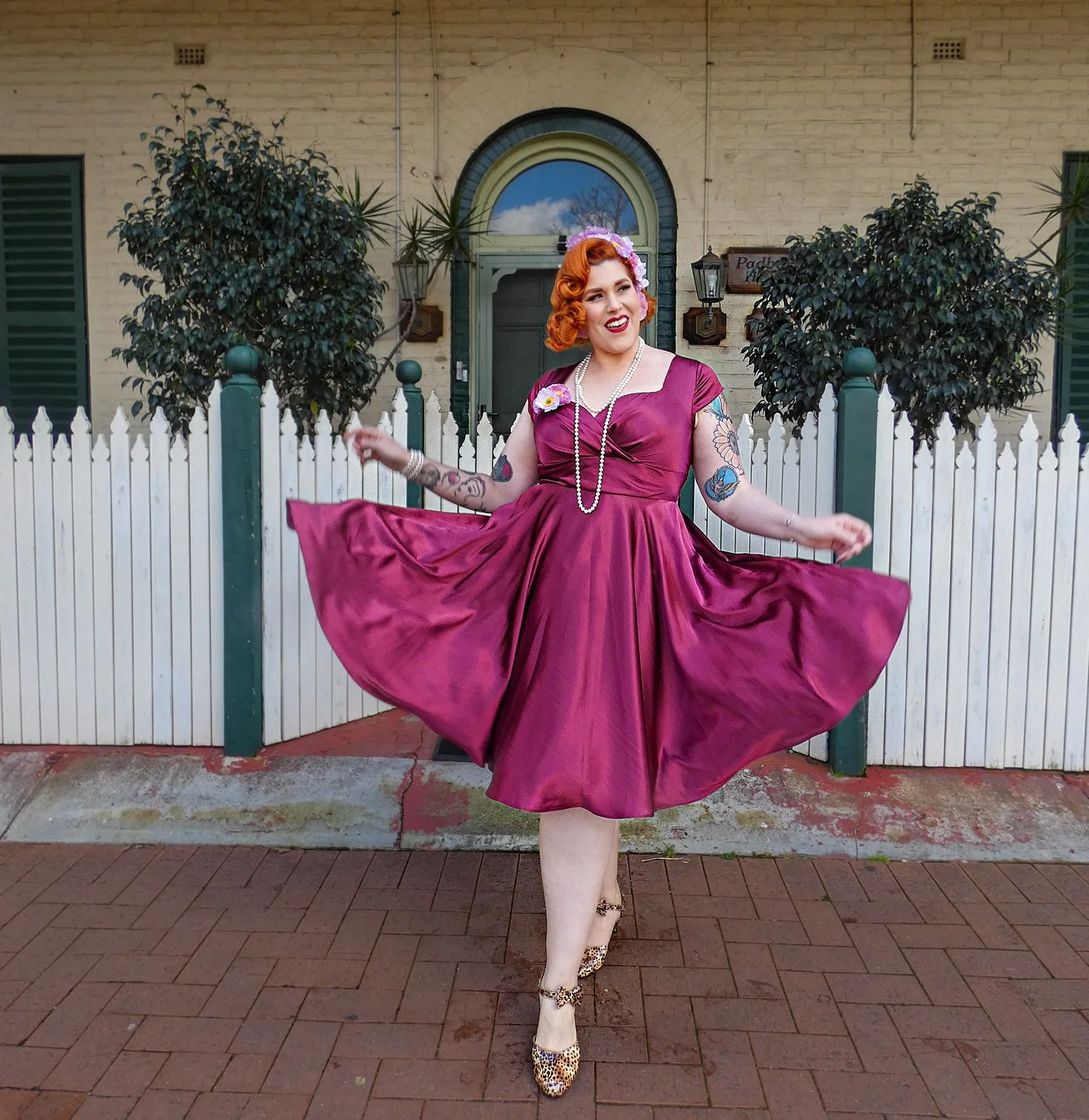 The gorgeous Miss Joy Curve reviewing the beautiful Kirra Dress by JK Retro Dresses